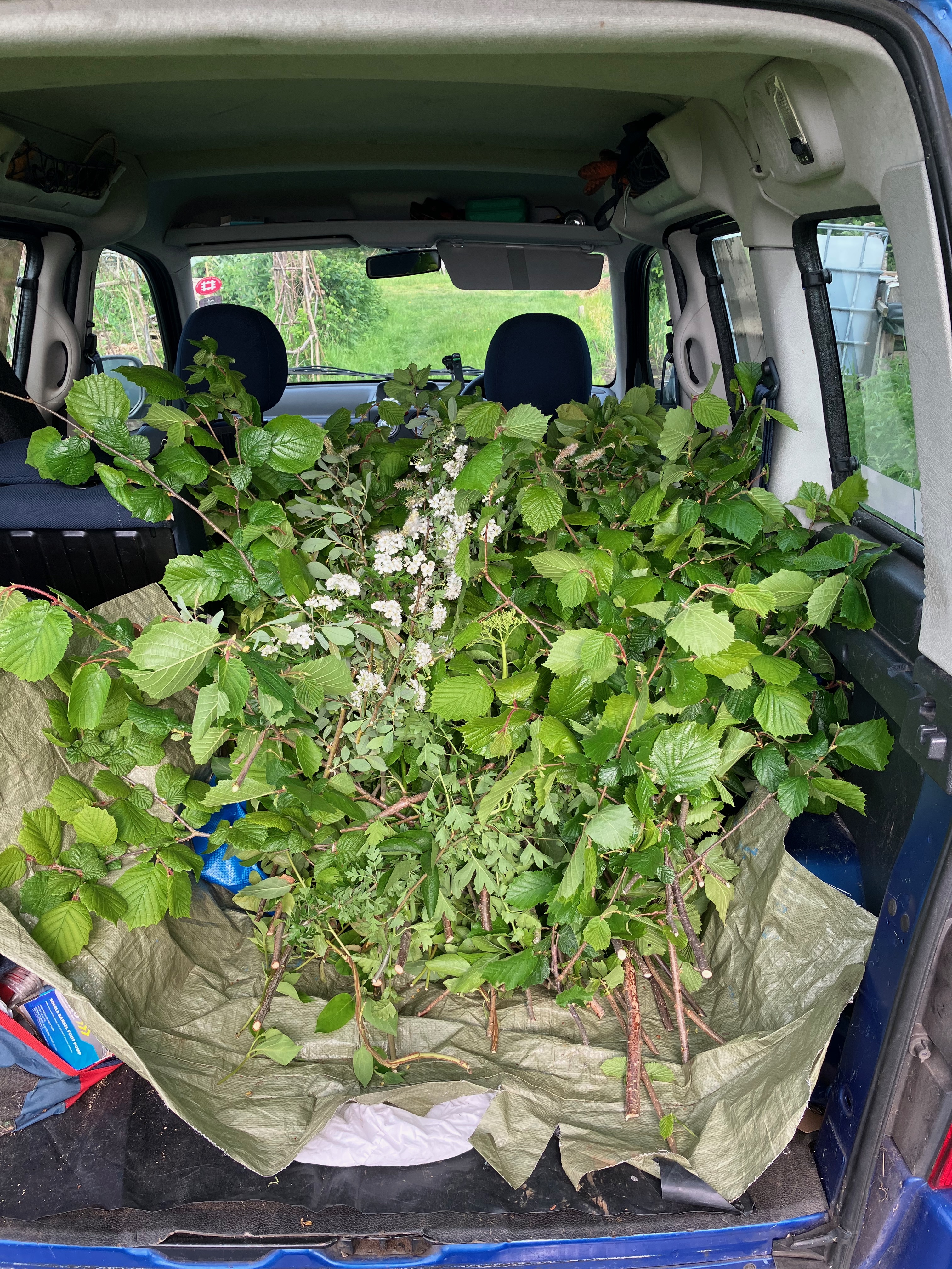 **Moss update – for anyone who was worrying about the moss – it is now colonising new ground in three different Coventry locations, providing homes for another set of insects and a lovely warm, comfy nest lining for at least one clutch of blackbird chicks. The tree seedlings have been planted out around Coventry and the allotment prunings have now been shredded and are on their way to becoming compost. The mushrooms were extremely tasty and fed the team for quite a while – top flavour votes went to the shiitake and lion’s mane.