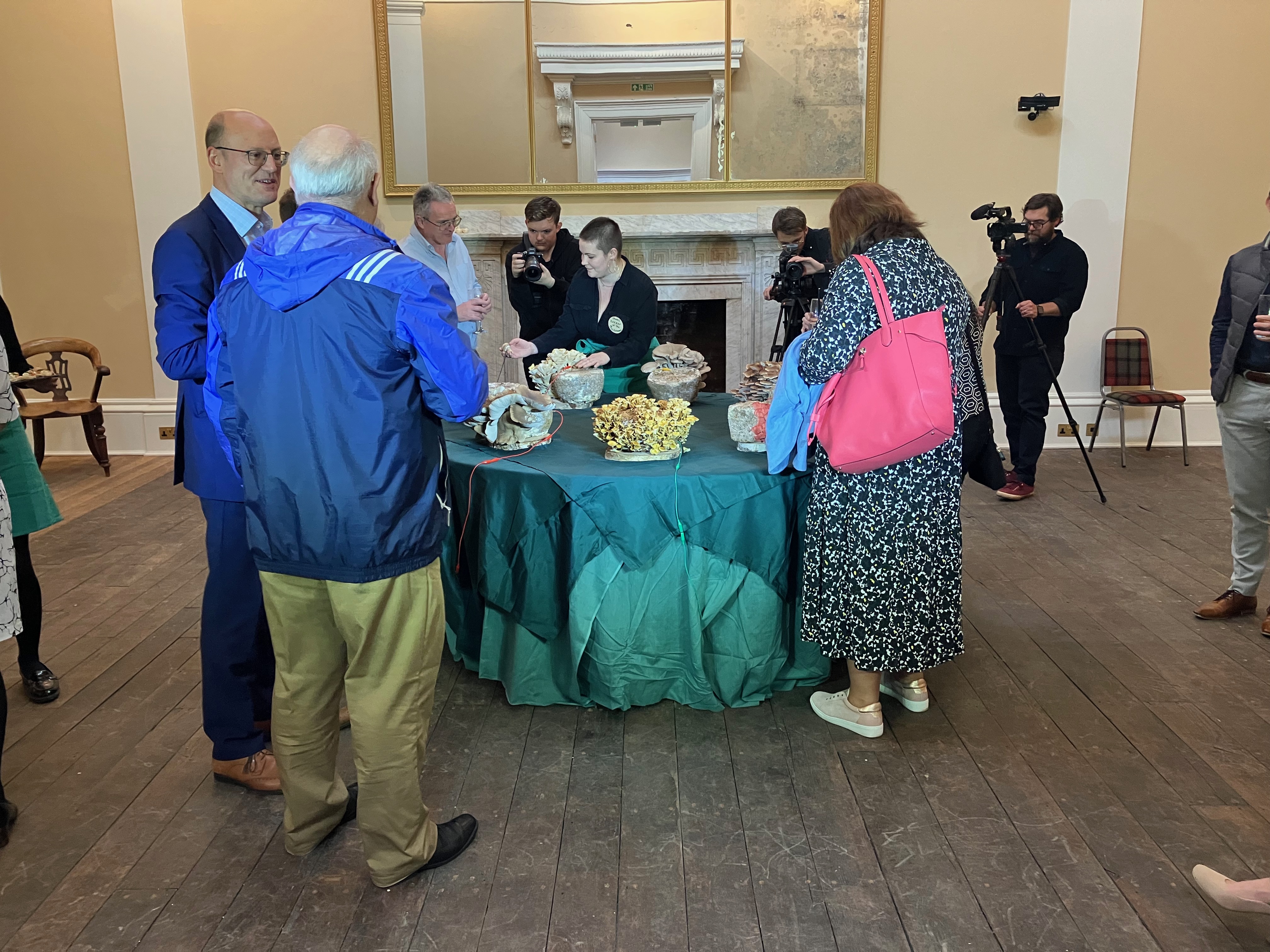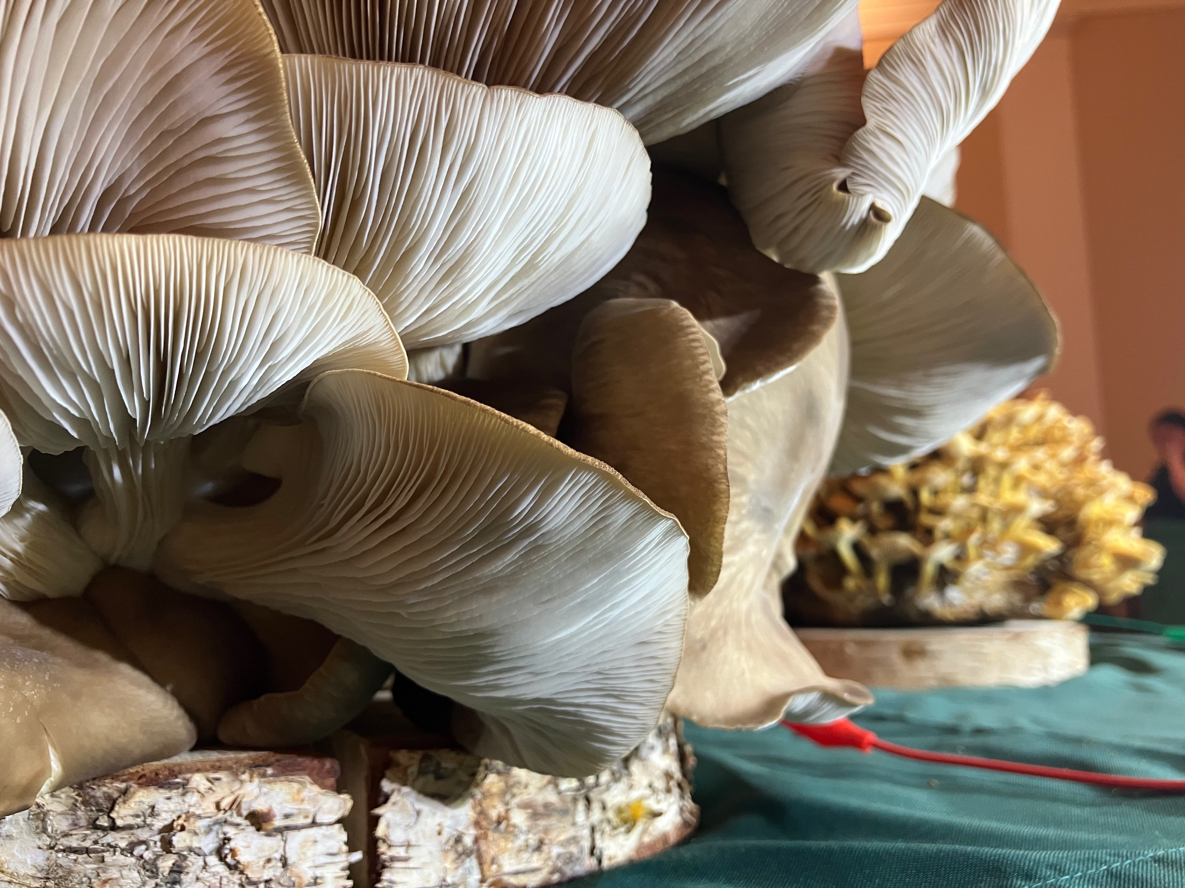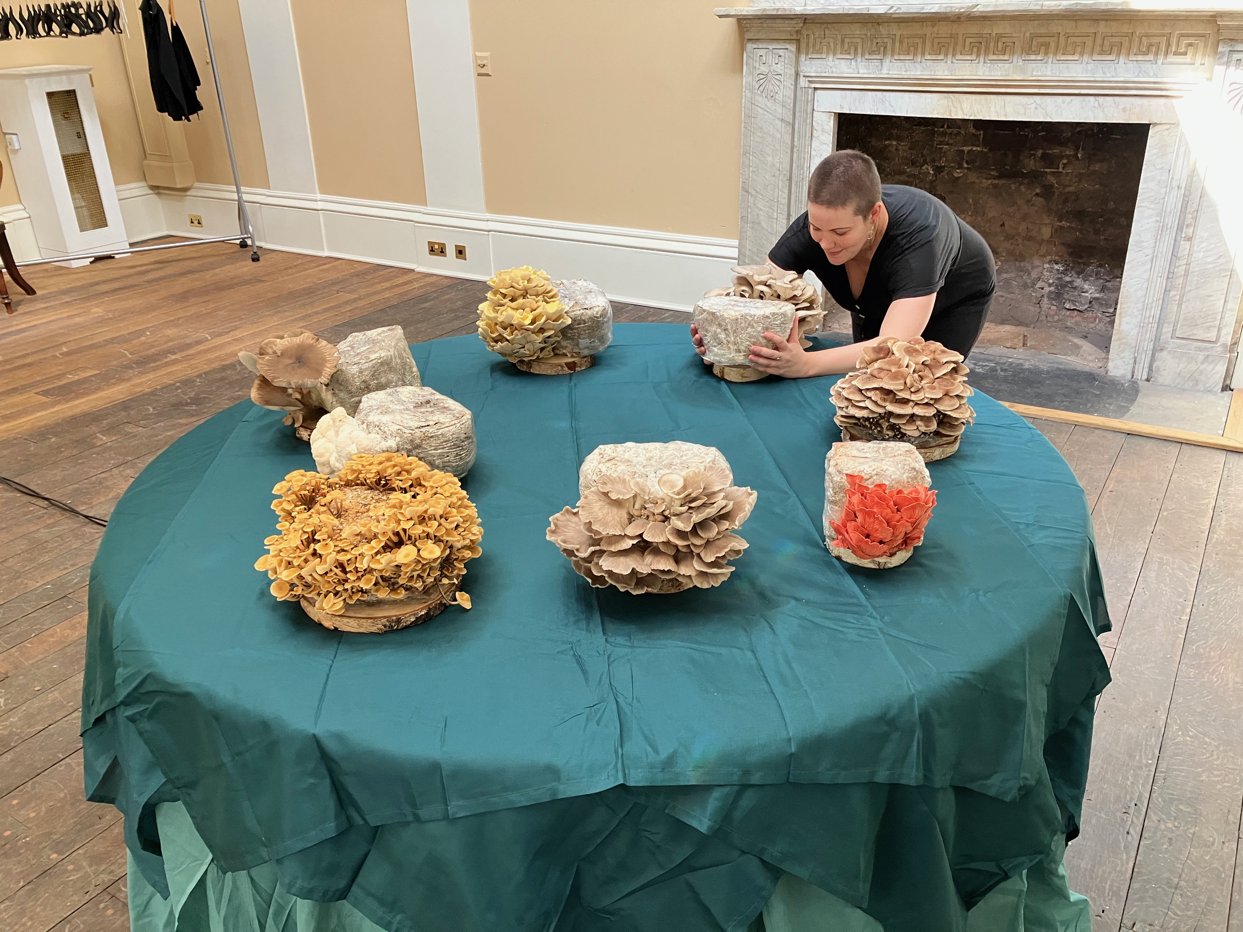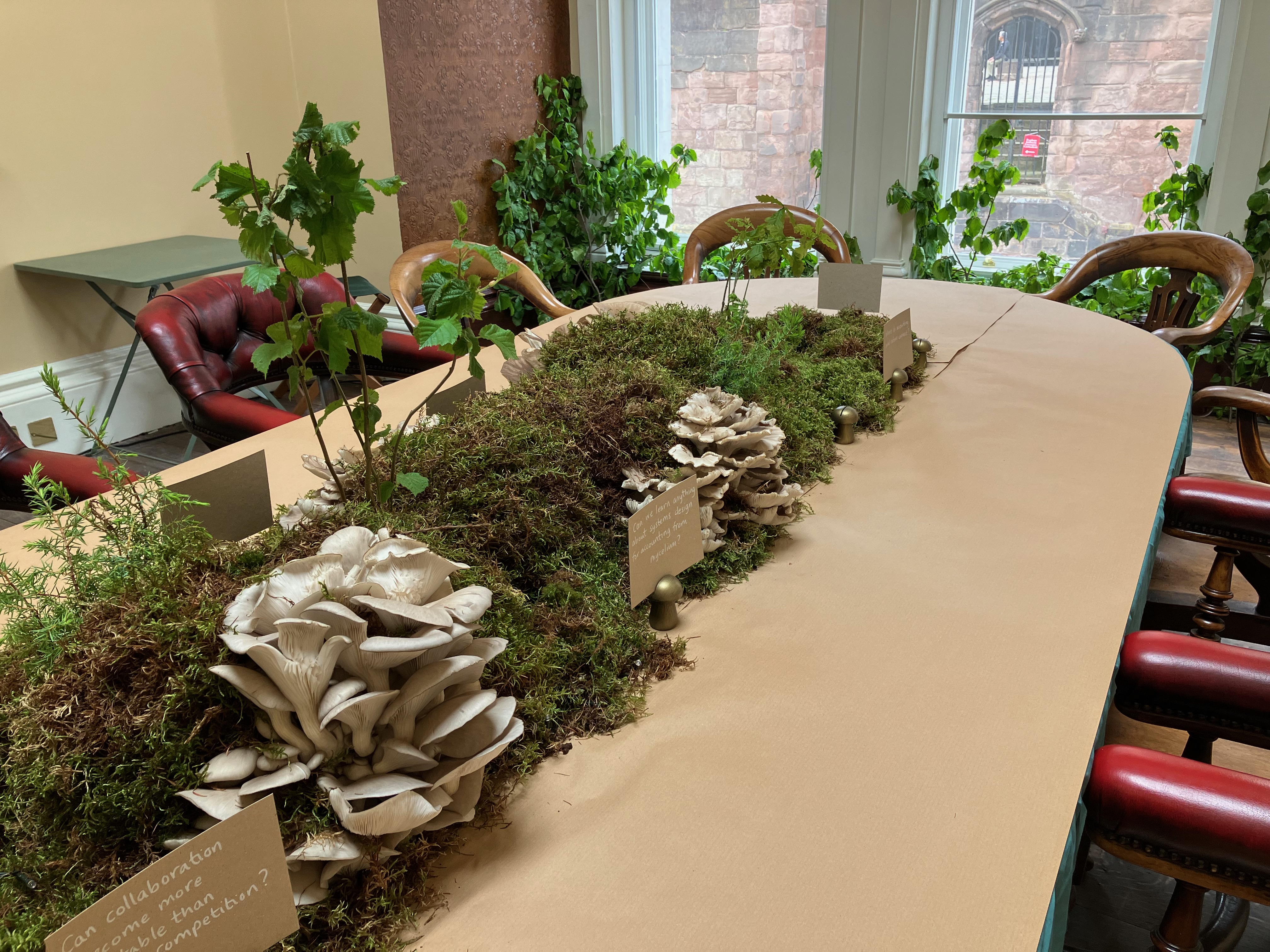 Artist, friend and collaborator the rather brilliant Lisa Franklin has been working with mycelium and fungi – and more broadly with living collaborators – for a number of years. I had a hunch that her tactile and interactive “mushroom music” installation set up, which would allow the accountants to both generate sounds and collaborate with each other and the mushrooms to make harmonies, would be a really useful (and enjoyable) hands-on way to embed connectivity and a consideration of mycelial systems into the event.