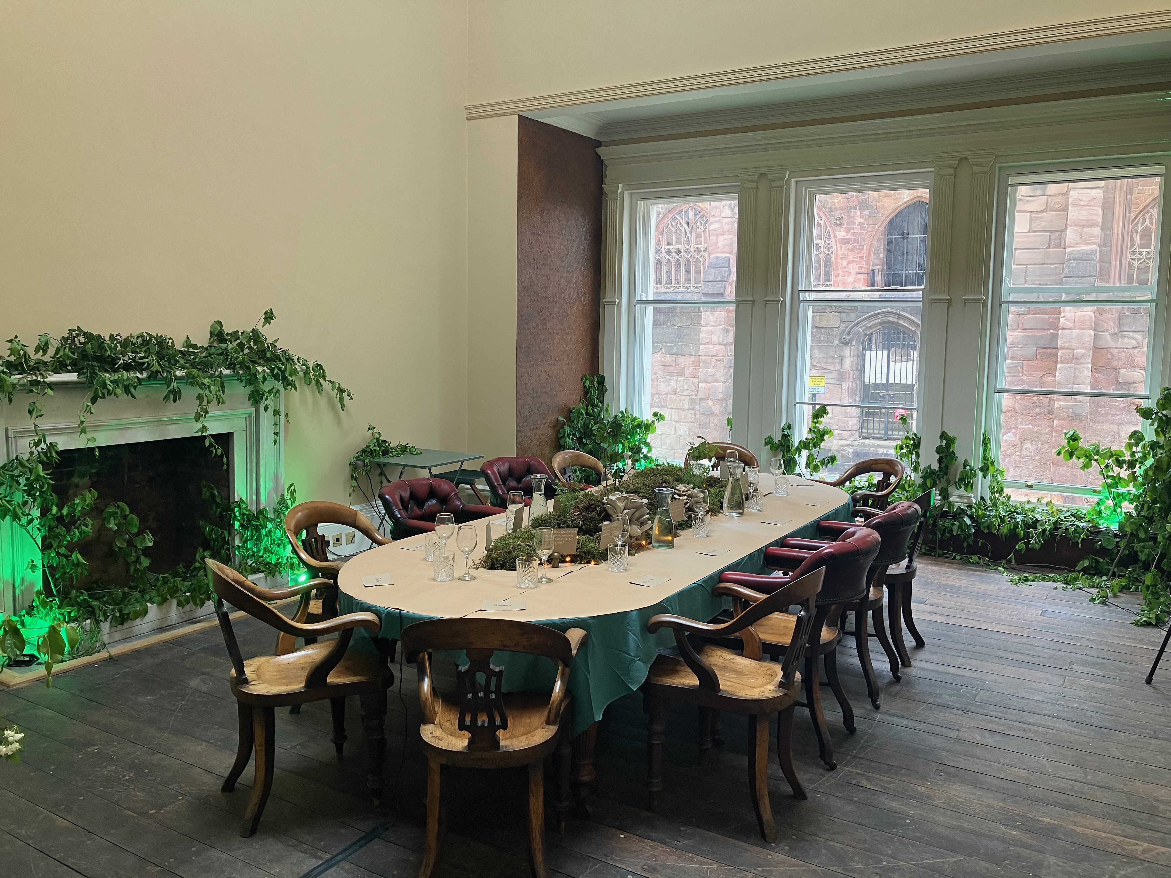 *When we started work, the menu was already set – although it would have been good to have been able to have had some influence over the food and drink, given there are so many environmental and ethical issues tied up in food production and transport. Although I didn’t manage to get mushrooms on the menu, I did have several conversations with the caterers to satisfy myself that the food served was not undermining the messages we were trying to convey.