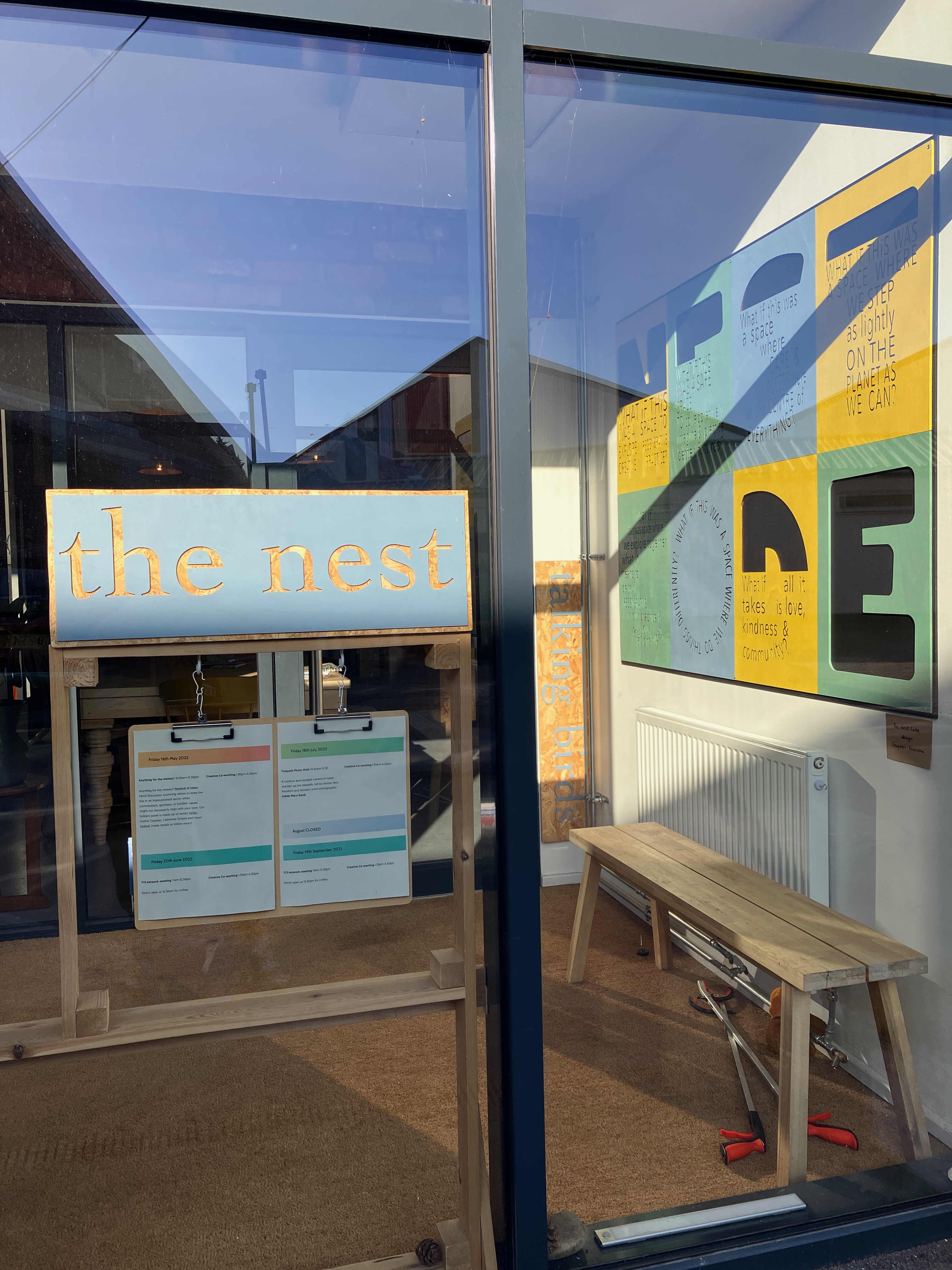 Regular visitors to The Nest may recall the original iteration of The Nest Code as a rather tatty and yellowing bit of paper tacked up in the entrance lobby! We’re delighted that the long-promised permanent version is now up and live – with huge thanks to fabulous artist (and former Nest resident) Gayatri Pasricha, who turned our words into art.