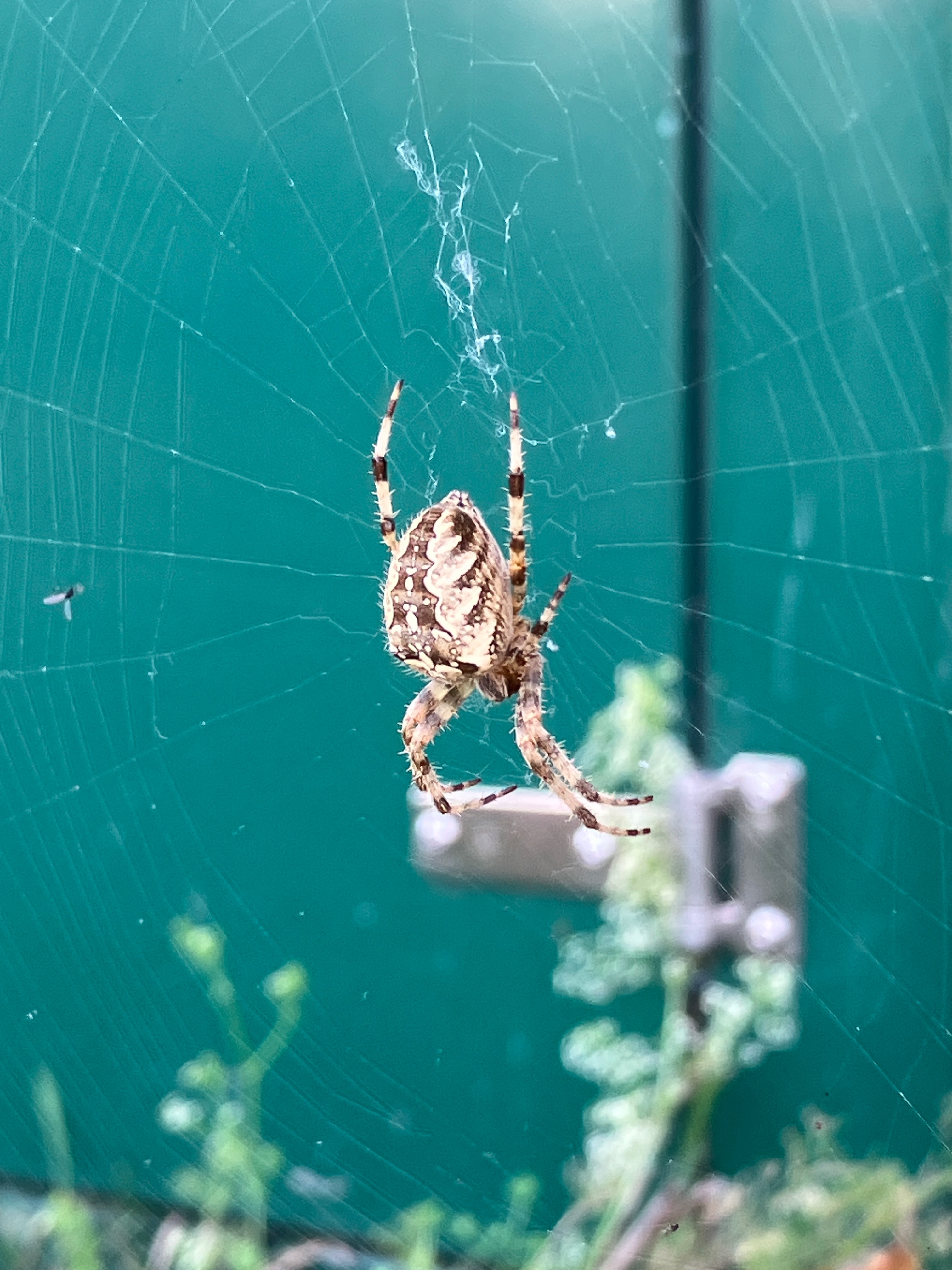 We didn’t cut many seedheads or dead stalks because they were being used by a large number of Garden Spiders to support their webs – layers and layers of flag-like webs phasing in and out of visibility with the movement of the air.