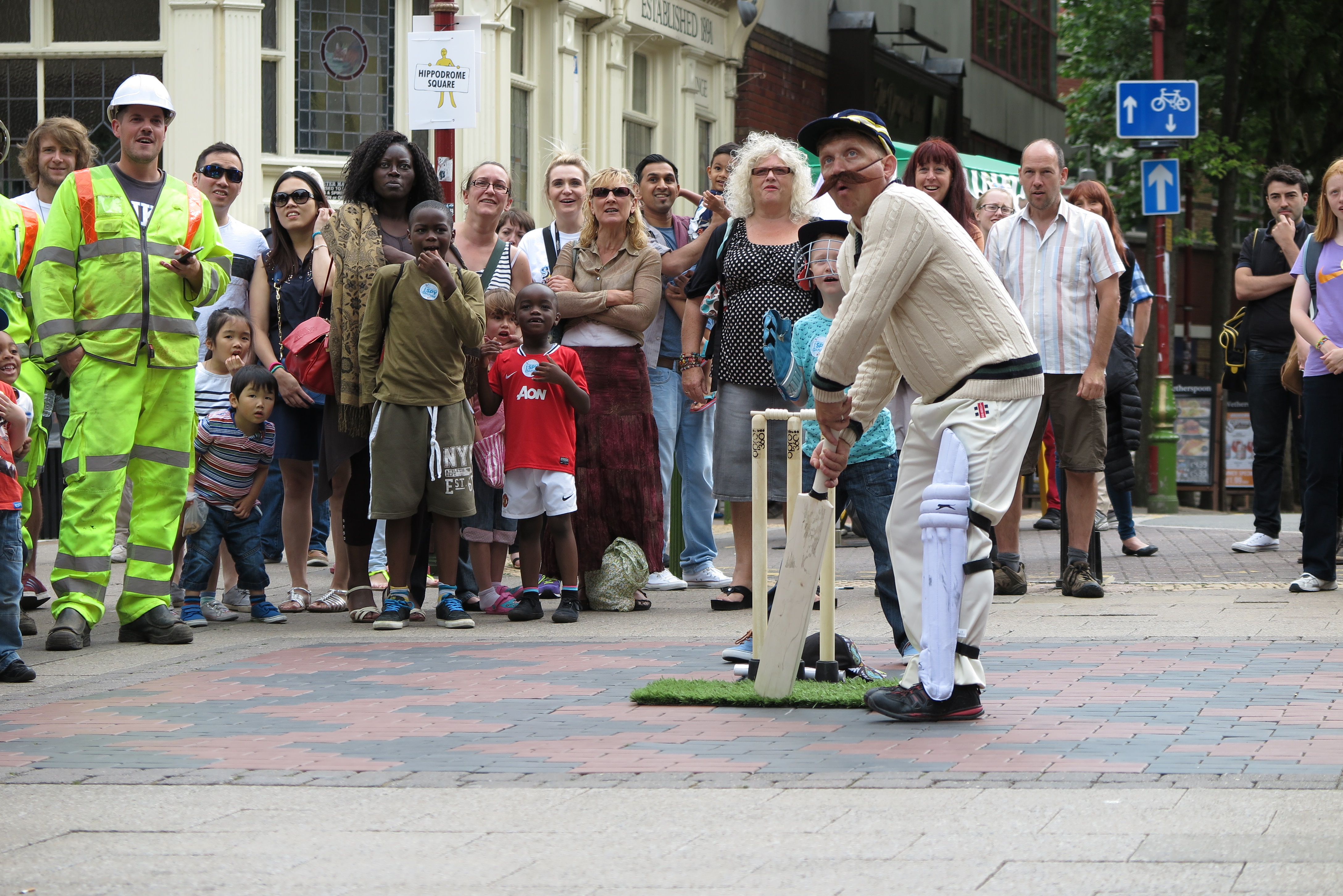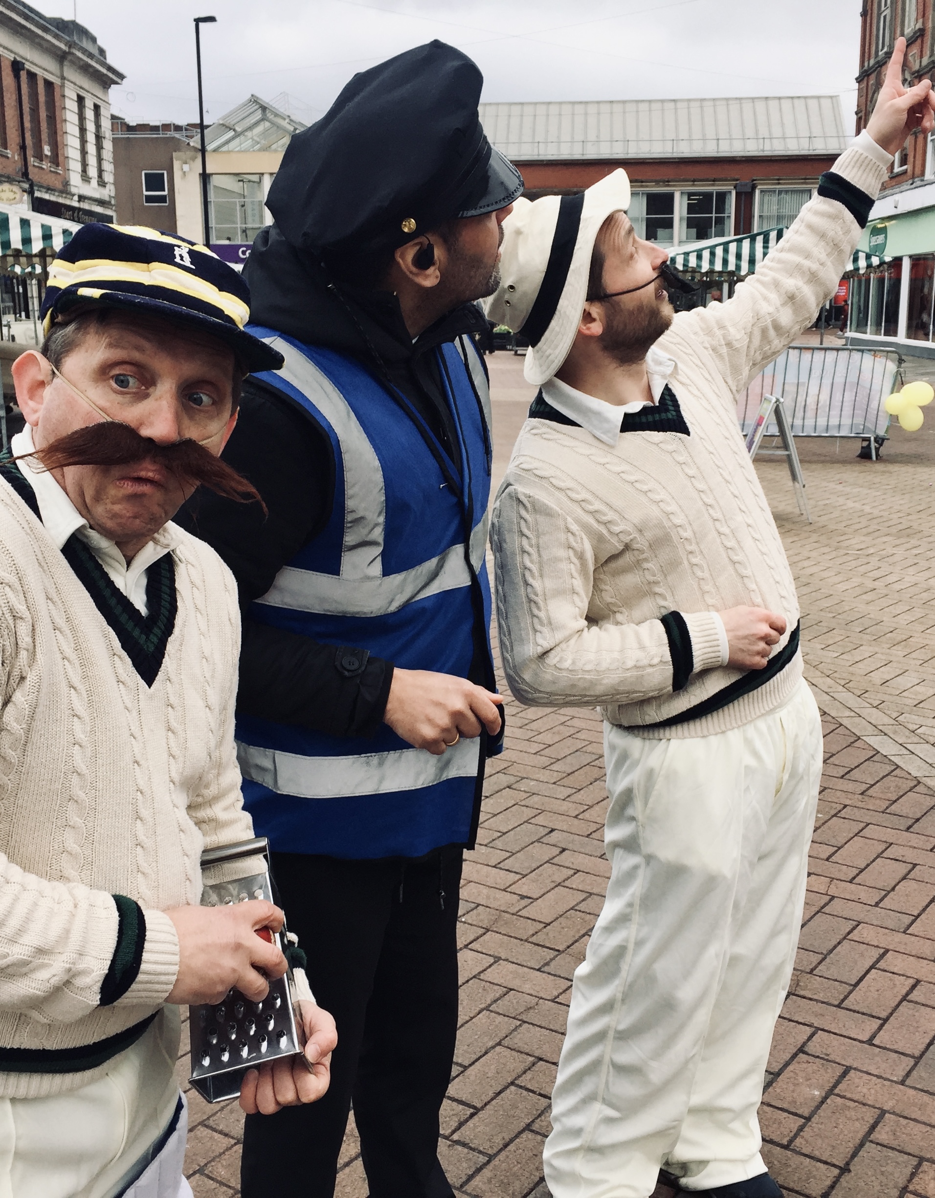 Enjoy some top-notch urban sporting activity from our pair of enthusiastic yet hapless players, who inevitably end up relying on the audience to bail them out. Expect Googlies and the odd LBW, possibly a Dibbly Dobbly and almost certainly a Sticky Wicket once the local Security Guard gets involved.